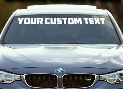 Windshield Banner with only lettering, no background. Email or dm us on Instagram with your choice of color: Black, White, Blue, Red, Gold or description of custom color you want as well as what you want the banner to say.